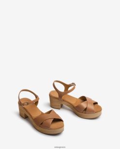καφέ 84Z4P403 γυναίκες Unisa μεσαίου ύψους δερμάτινο σανδάλι με τακούνι