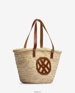 καφέ 84Z4P1098 γυναίκες Unisa μεσαίο πλεκτό καλάθι με δερμάτινα χερούλια και λογότυπο