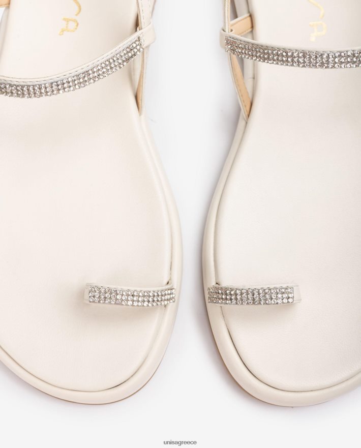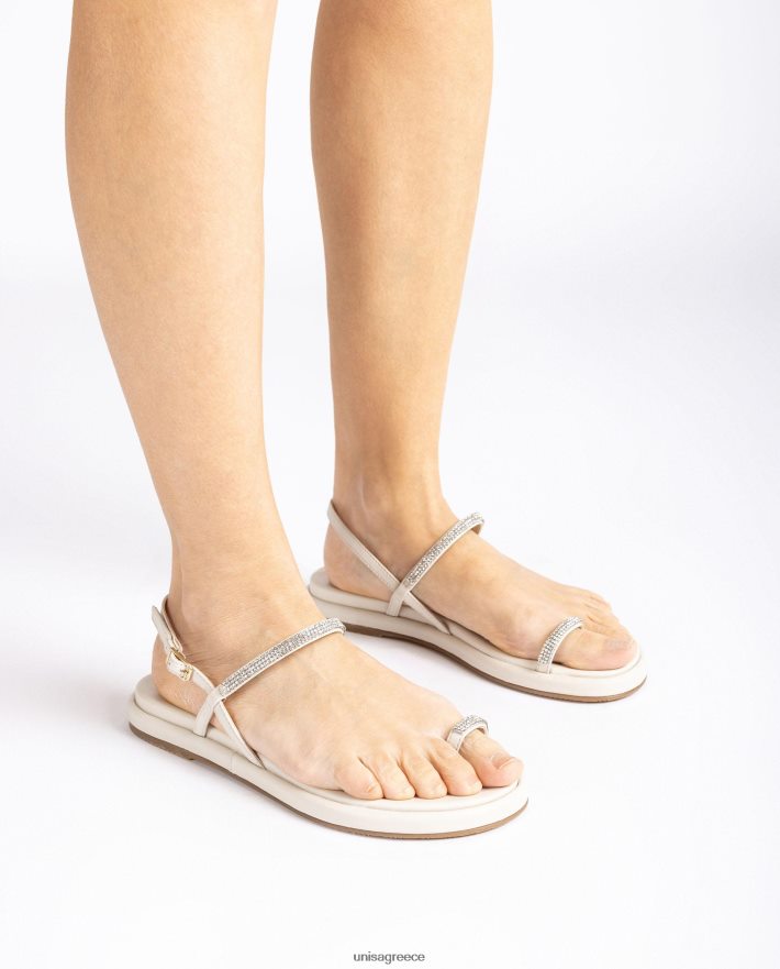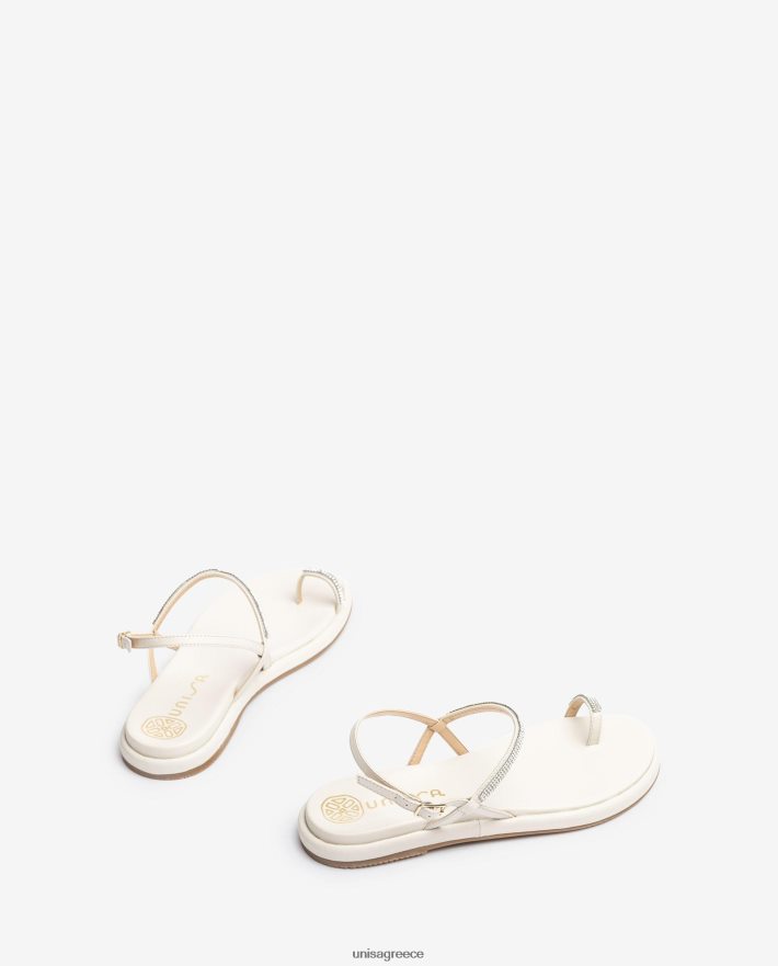 άσπρο 84Z4P1313 γυναίκες Unisa φλατ δερμάτινο toe-post σανδάλι