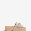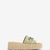 πέδιλο σουέτ με στρογγυλή μύτη με δερμάτινο βαμπ. επένδυση αλυσίδας. Μπλοκ τακούνι ύψους 4,5 εκ. και πλατφόρμα 3 εκ., ντυμένη με φυσική ράφια. παχύς αφρός σε όλη τη σόλα για περισσότερη άνεση. η άνεση έφτασε στο πλήρες της μεγαλείο.