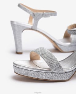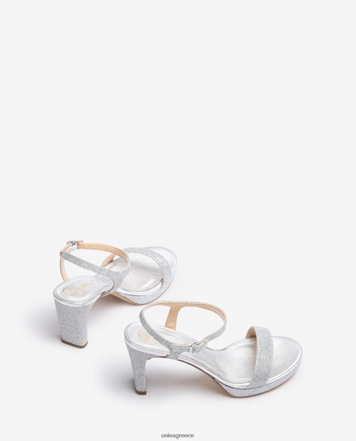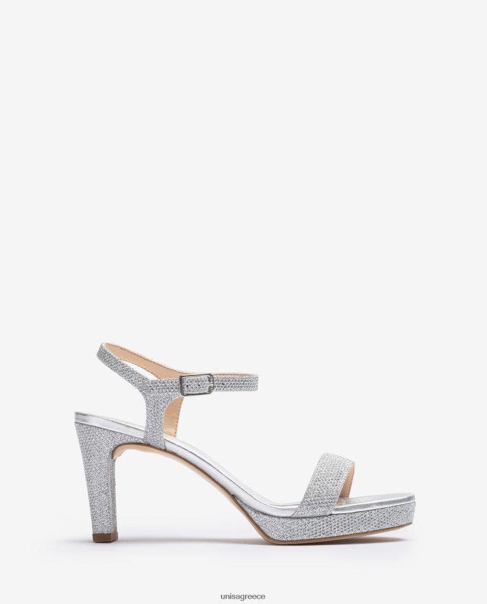 ασήμι 84Z4P19 γυναίκες Unisa γυαλιστερό υφασμάτινο σανδάλι