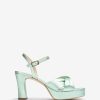 πέδιλο με στρογγυλή μύτη από γυαλιστερό ύφασμα. Τακούνι 8 εκ. και πλατφόρμα 1 εκ. με ασορτί σουέτ. λουράκι αστραγάλου που μπορεί να ρυθμιστεί με τη μεταλλική πόρπη και ελαφριά, αντιολισθητική, λαστιχένια σόλα. πολυτελή χειροποίητα φινιρίσματα.
