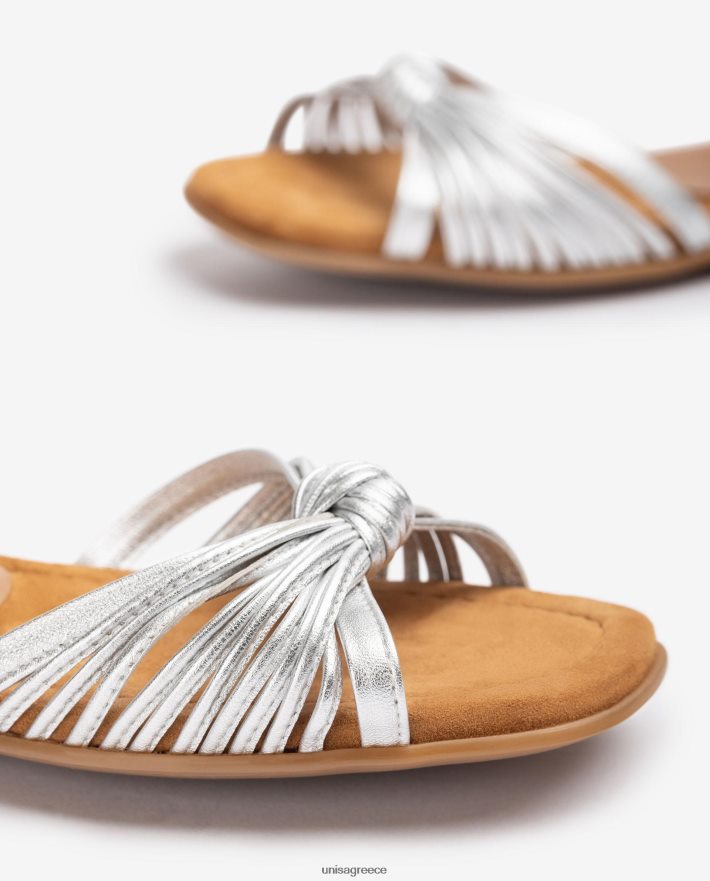 ασήμι 84Z4P329 γυναίκες Unisa πλακέ μεταλλικό πέδιλο με πολλά λουράκια