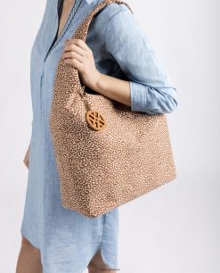 τσάντα hobo μεγάλου μεγέθους από ανακυκλωμένο εμπριμέ ύφασμα. Κλείσιμο με μαγνητικό κούμπωμα και επένδυση λογότυπου που κρέμεται στη λαβή. 31 cm x 35 cm x 17 cm