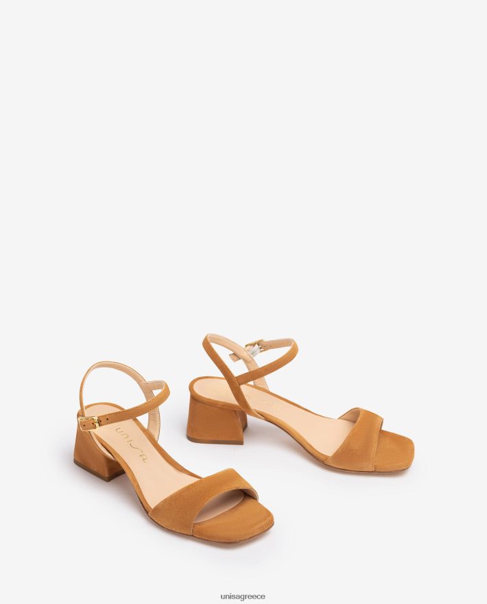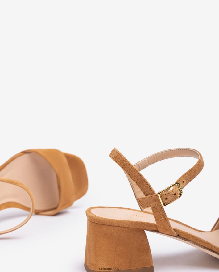καφέ 84Z4P154 γυναίκες Unisa σανδάλι με φαρδύ τακούνι