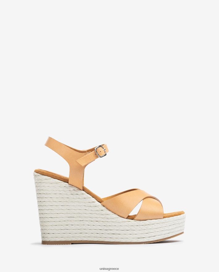καφέ 84Z4P171 γυναίκες Unisa σανδάλι με σφήνα τακούνι και σόλα με επένδυση
