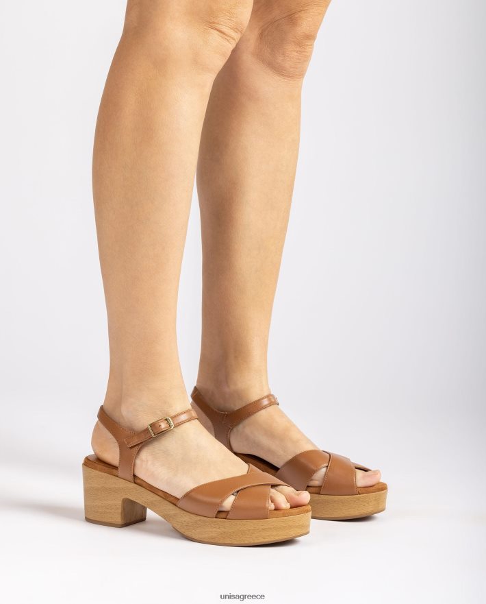 καφέ 84Z4P403 γυναίκες Unisa μεσαίου ύψους δερμάτινο σανδάλι με τακούνι