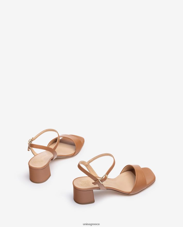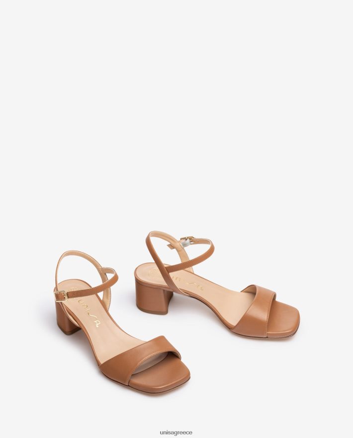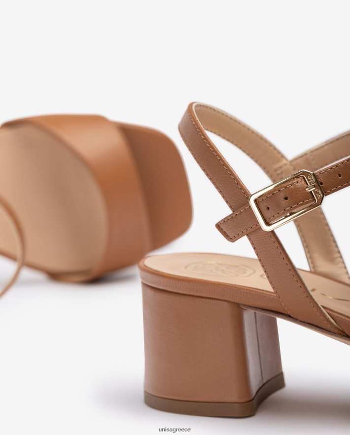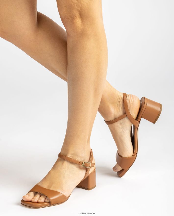 καφέ 84Z4P433 γυναίκες Unisa σανδάλι με φαρδύ τακούνι