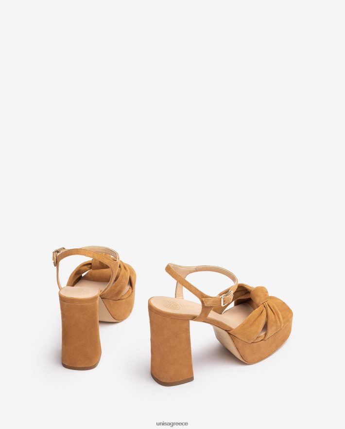 καφέ 84Z4P51 γυναίκες Unisa Σανδάλι τετράγωνης μύτης με κόμπο στο μπροστινό μέρος