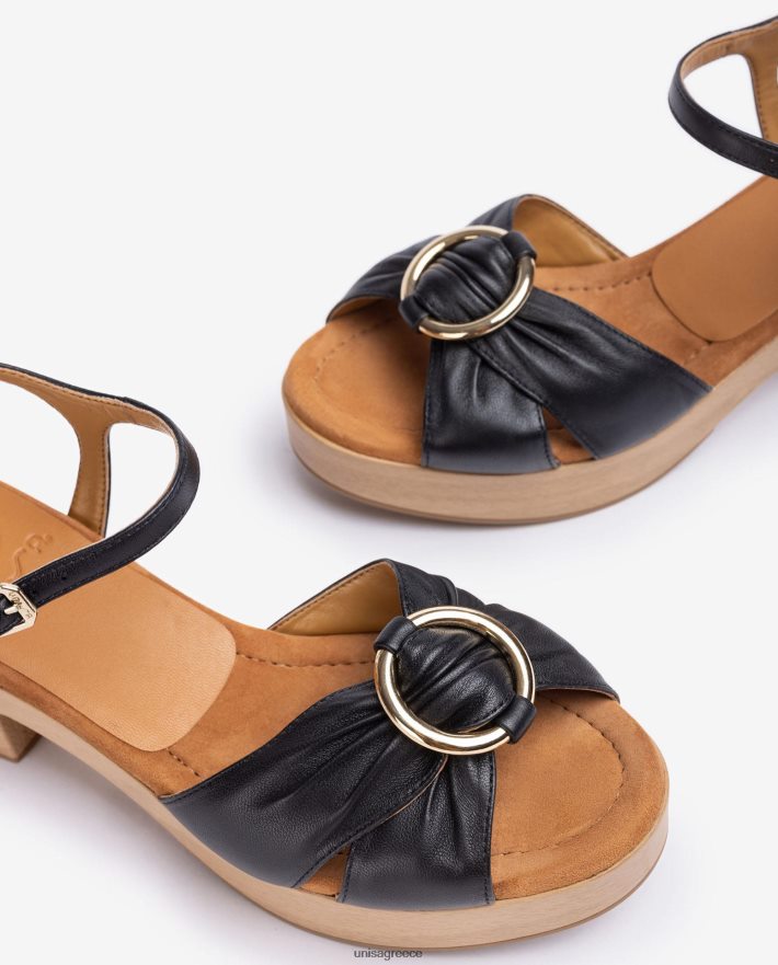 μαύρος 84Z4P118 γυναίκες Unisa σανδάλι με στρογγυλή μύτη με τελειώματα