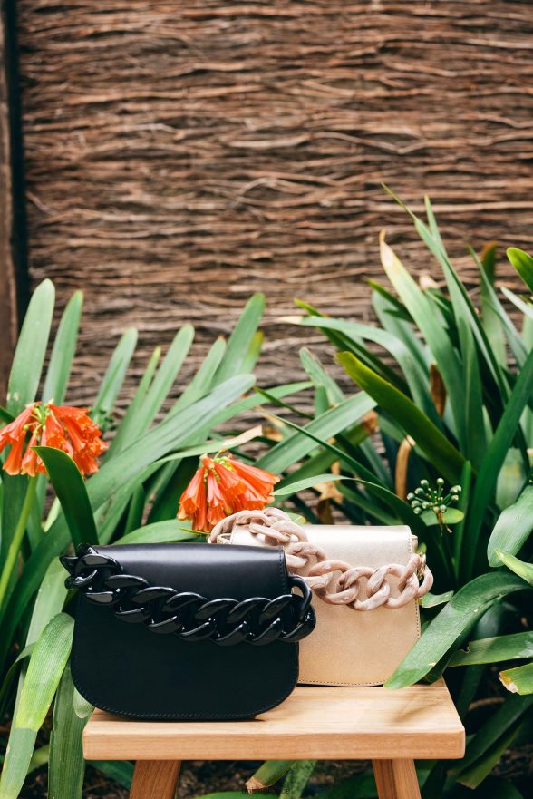 μικρή δερμάτινη τσάντα. θήκη με κλείσιμο με μαγνήτη. λουράκι χειρός με μεγάλη αλυσίδα και χιαστί δερμάτινο λουράκι ώμου. Ολοκληρώστε όλες τις εμφανίσεις σας με αυτήν την τσάντα unisa.