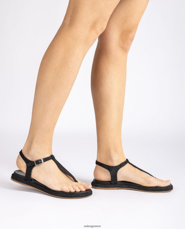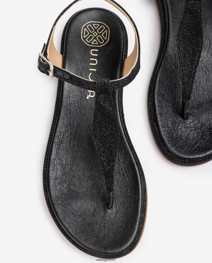 μαύρος 84Z4P26 γυναίκες Unisa πέδιλο toe-post από γυαλιστερό ύφασμα