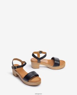 μαύρος 84Z4P317 γυναίκες Unisa δερμάτινο σανδάλι με μπλοκ εφέ ξύλου