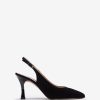 μυτερό παπούτσι από καστόρινο sling πίσω. Λεπτό τακούνι ύψους 5 cm σε ταιριαστό τόνο. λουράκι αστραγάλου που μπορεί να ρυθμιστεί με τη μεταλλική πόρπη. ελαφριά, εύκαμπτη, αντιολισθητική, σόλα από καουτσούκ. ευελιξία και κομψότητα στην καθαρή του κατάσταση.