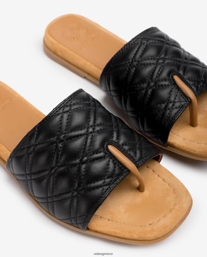 ίσιο σανδάλι τετράγωνο από δέρμα. καπιτονέ vamp με γεωμετρικό σχέδιο και λουράκι από φυσικό δέρμα ανάμεσα στα δάχτυλα των ποδιών. ελαφριά, εύκαμπτη, αντιολισθητική, σόλα από καουτσούκ. Η σχεδίαση και η άνεση που παρέχει η unisa θα σας συνοδεύουν σε όλα σας τα βήματα.