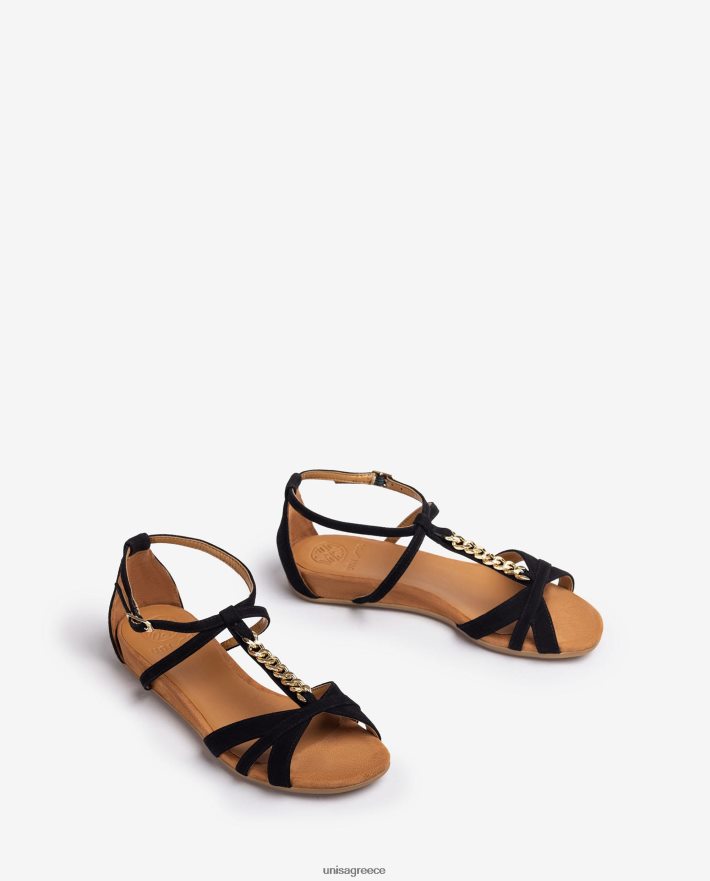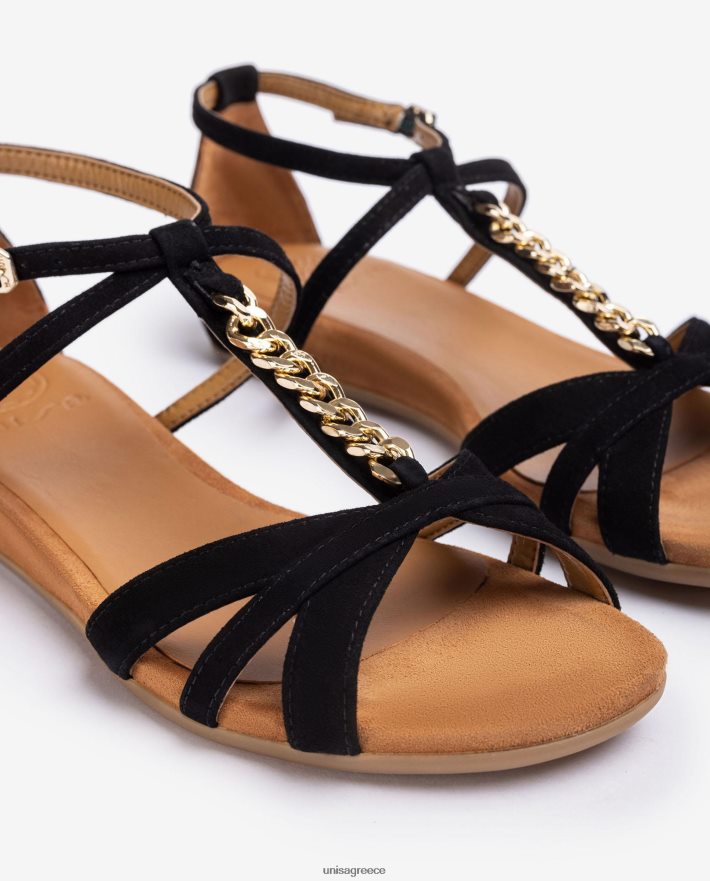 μαύρος 84Z4P89 γυναίκες Unisa φλατ πέδιλο με αλυσίδα