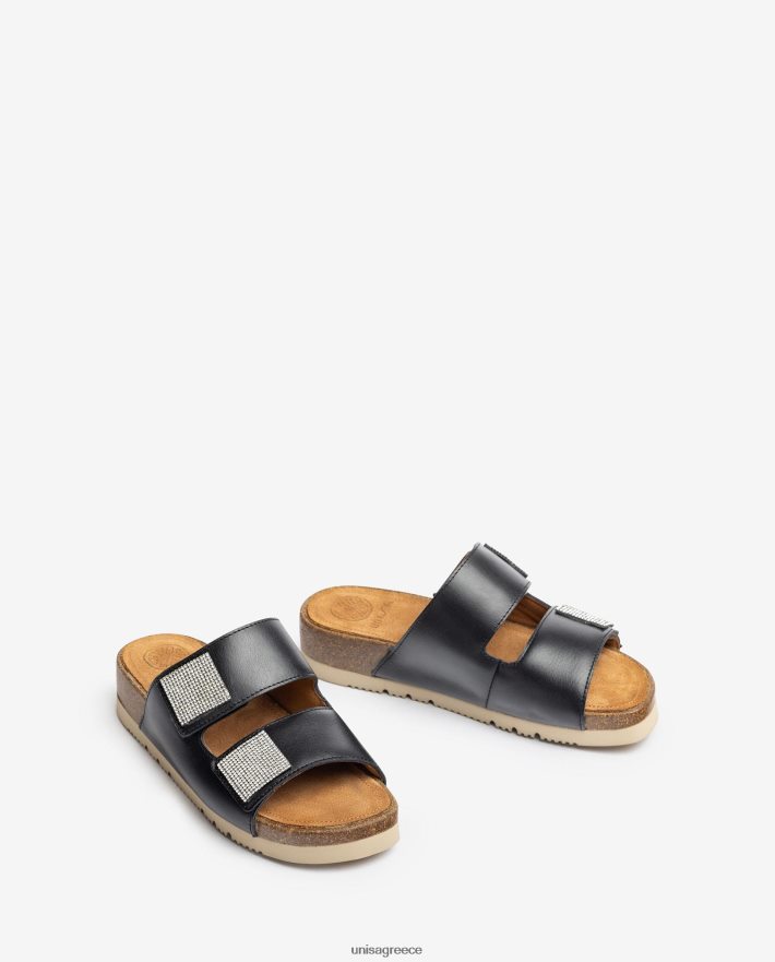 μαύρος 84Z4P94 γυναίκες Unisa ίσιο πέδιλο με διπλό λουράκι