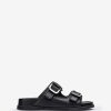 επίπεδο δερμάτινο σανδάλι με μεταλλική επένδυση με διπλή αγκράφα στο vamp. ταιριαστό χρώμα ενδιάμεσης και εξωτερικής σόλας.