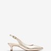 μυτερό παπούτσι από καστόρινο sling πίσω. Λεπτό τακούνι ύψους 5 cm σε ταιριαστό τόνο. λουράκι αστραγάλου που μπορεί να ρυθμιστεί με τη μεταλλική πόρπη. ελαφριά, εύκαμπτη, αντιολισθητική, σόλα από καουτσούκ. ευελιξία και κομψότητα στην καθαρή του κατάσταση.