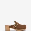 σουέντ μουλάρι με μεταλλικά καρφιά και αγκράφα. Σόλα σε εφέ ξύλου με τακούνι 5,5 cm και πλατφόρμα 3 cm.