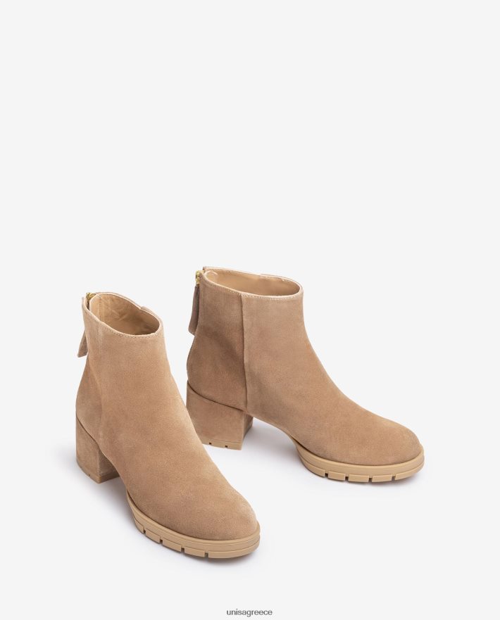 μπεζ 84Z4P921 γυναίκες Unisa δερμάτινα μποτάκια με φερμουάρ