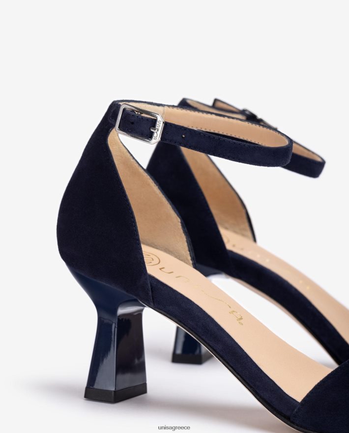 μπλε 84Z4P364 γυναίκες Unisa πέδιλο σουέντ με γεωμετρικό τακούνι