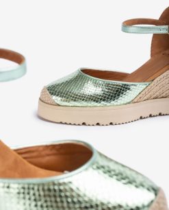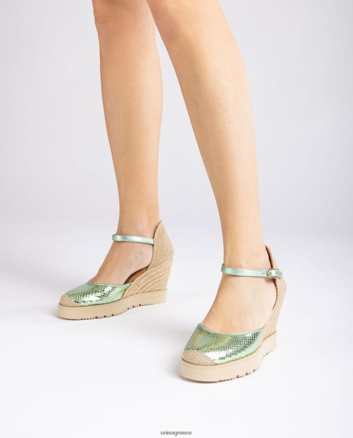 d’orsay λουράκι αστραγάλου εσπαντρίγγια από μεταλλικό δέρμα. Σφήνα raffia φυσικού χρώματος ύψους 7 cm και πλατφόρμα 2 cm. ελαφρύτερη και πιο ευέλικτη σόλα eva από ποτέ, χάρη στην τεχνολογία superlight. μεσογειακή ουσία στα παπούτσια unisa.