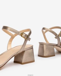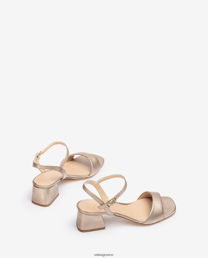 χρυσός 84Z4P2 γυναίκες Unisa πέδιλο μεταλλικό δερμάτινο με φαρδύ τακούνι