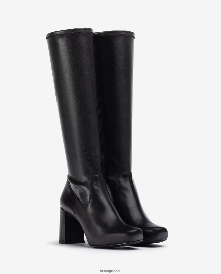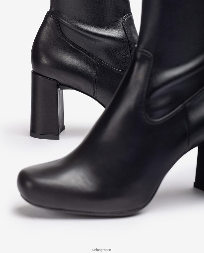 Μποτάκι τετράγωνο από δέρμα και ελαστικό ύφασμα με εφέ δέρματος. Τακούνι 8 cm και εσωτερική πλατφόρμα 1,7 cm. ελαφριά, εύκαμπτη, αντιολισθητική σόλα από καουτσούκ. τελειώματα ραφής στο μπροστινό μέρος. ένα βασικό κλασικό στον κόσμο της unisa.