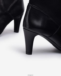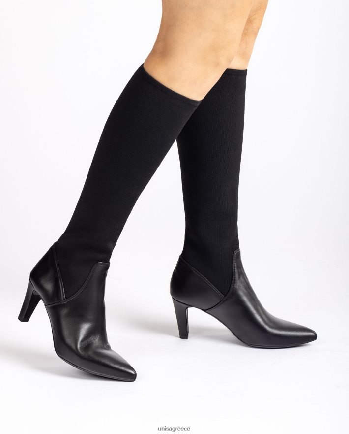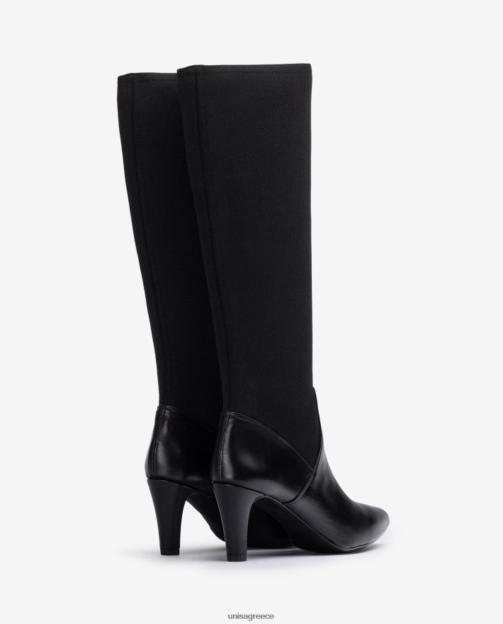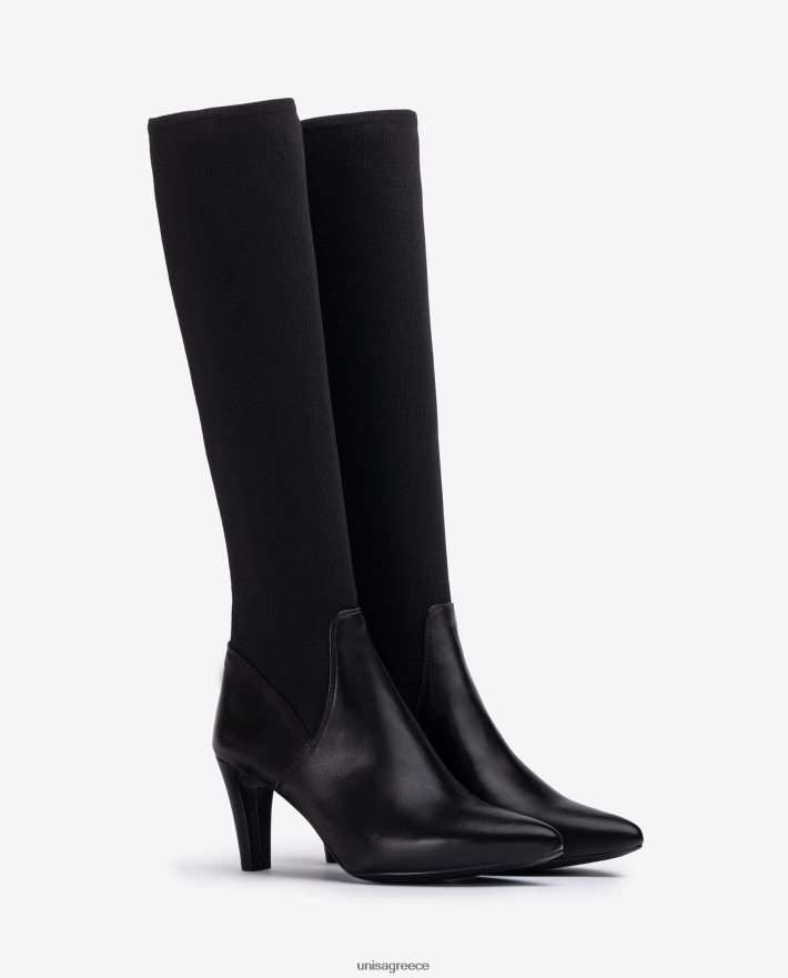 ψηλό μποτάκι από δέρμα και ελαστικό ύφασμα. τακούνι ύψους 7 cm και εύκαμπτη και ελαφριά σόλα από καουτσούκ.