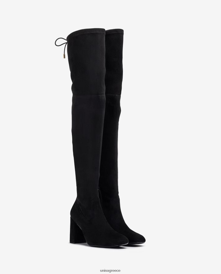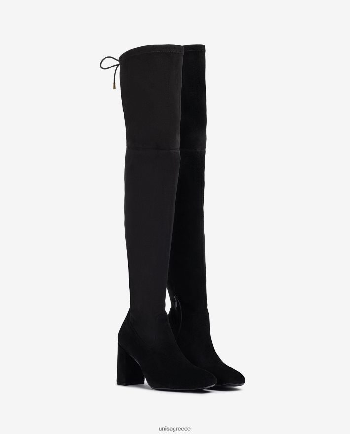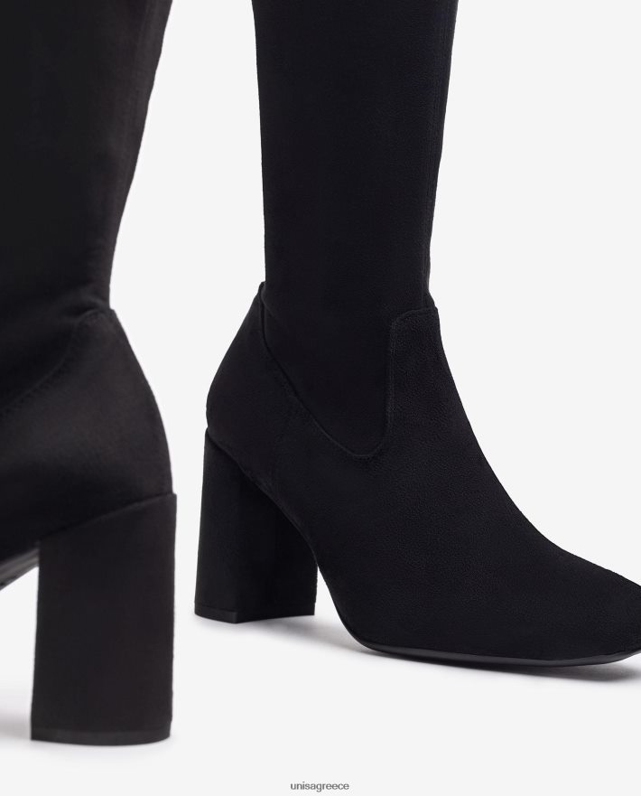 μποτάκι μηρού με τετράγωνο δάχτυλο κατασκευασμένο από δερμάτινο ελαστικό δέρμα. τακούνι ύψους 8,5 cm. ελαφριά, εύκαμπτη, αντιολισθητική σόλα από καουτσούκ. οι τέλειοι σύμμαχοι για τη γυναίκα unisa.