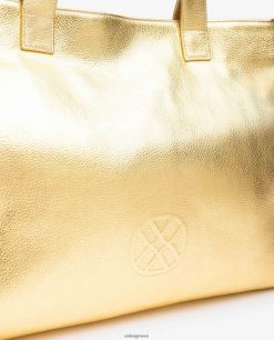 μεγάλη τσάντα φτιαγμένη από μεταλλικό δέρμα. ιμάντες ώμου και κλείσιμο με μαγνητικό κούμπωμα. τσέπη εσωτερικά με φερμουάρ. μέγεθος: 30cm x 41cm x 18cm
