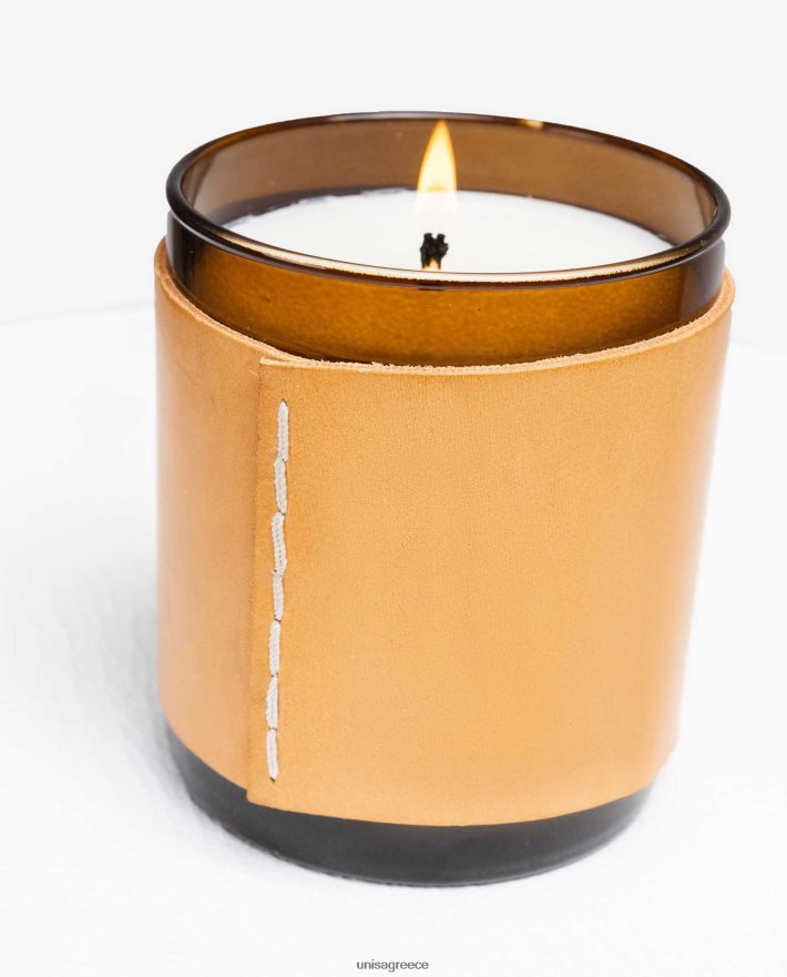 230 γρ. αρωματικό κερί, 100% φυτικό κερί και 100% βαμβάκι φυτίλι. Κεχριμπάρι γυάλινο κύπελλο, διακοσμητικό από δέρμα αγελάδας, ραμμένο στο χέρι και χαραγμένο με χρυσό εφέ.