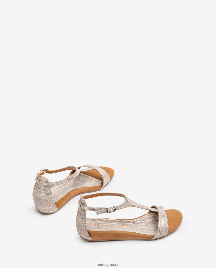 μόδα 84Z4P450 γυναίκες Unisa Δερμάτινα σανδάλια σε μεταλλικό εφέ με λουράκι
