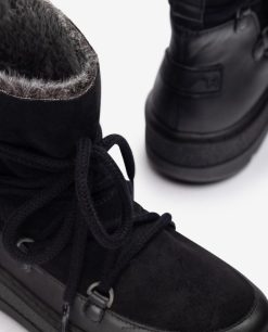 Μποτάκι apres ski από ύφασμα εφέ σουέντ με κορδόνια. ασορτί επένδυση από ψεύτικη γούνα στο εσωτερικό. Ελαφριά, εύκαμπτη και αντιολισθητική σόλα από καουτσούκ supersoft και αφαιρούμενη και εργονομική σόλα κατασκευασμένη με εσωτερική επένδυση respilon. θα είναι οι καλύτεροι σύμμαχοί σου ενάντια στο κρύο!