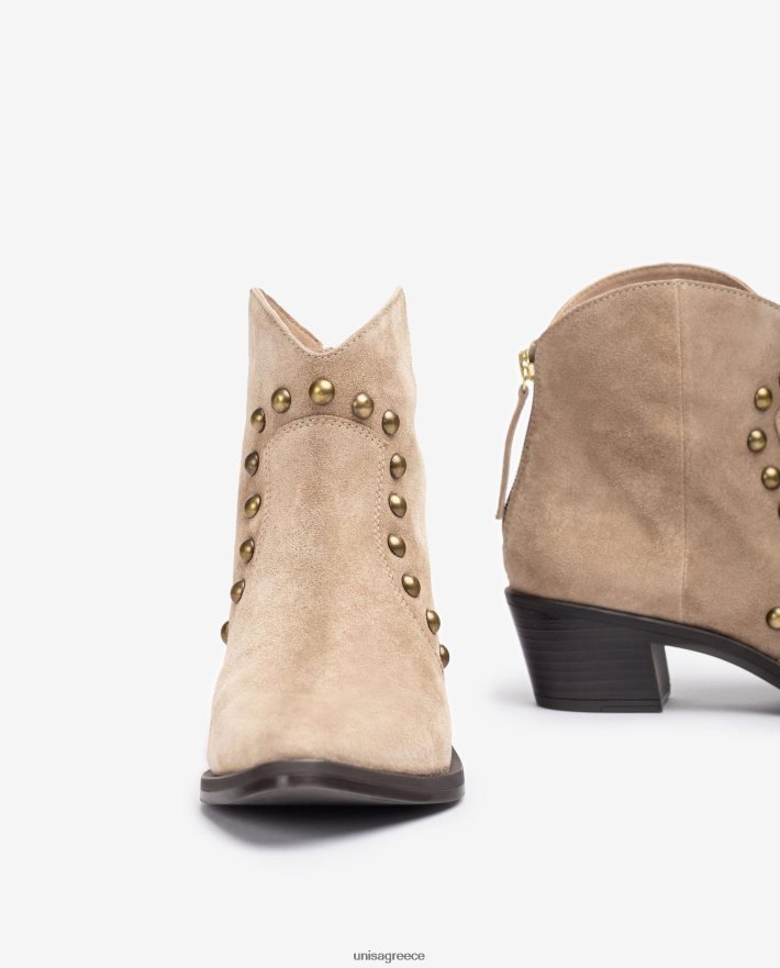 καστόρινο μποτάκι σε στυλ καουμπόη με μυτερή μύτη. ασορτί καρφιά στο μπροστινό μέρος και φερμουάρ στο πίσω μέρος. Τακούνι ύψους 5 cm και αντιολισθητική, εύκαμπτη και ελαφριά σόλα από καουτσούκ. μια τάση που δημιουργεί μια θέση για τον εαυτό της στη νέα συλλογή unisa.