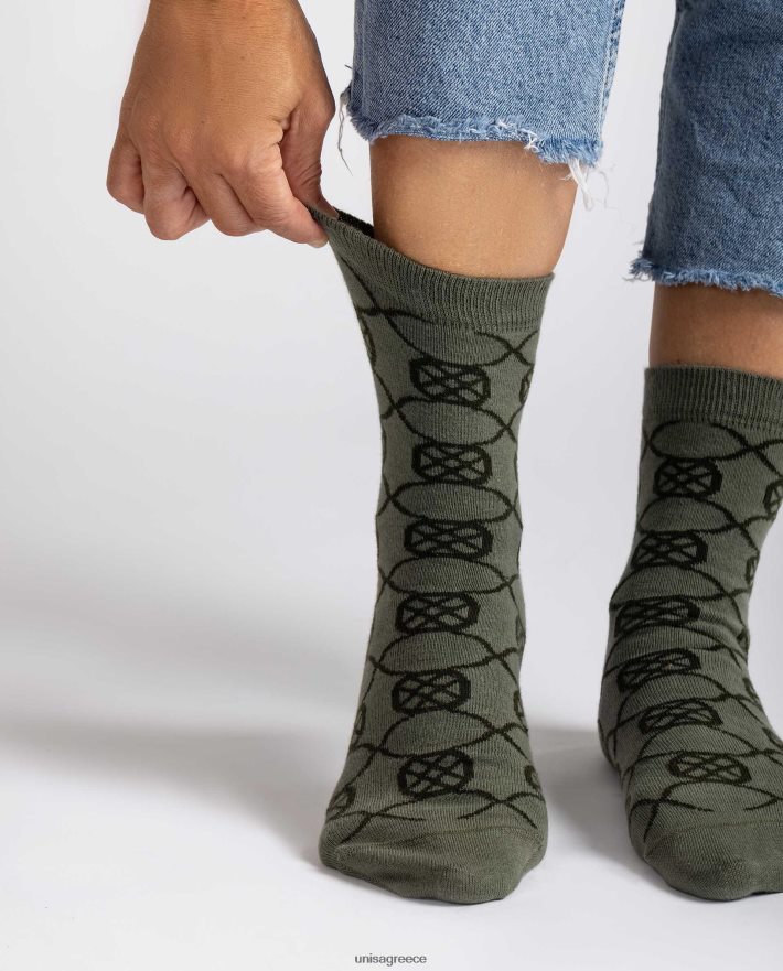 κάλτσες από οργανικό βαμβάκι στη μέση της γάμπας. Εκτύπωση μονογράμματος αντίθεσης. ολοκληρώστε το unisa look σας με αυτές τις κάλτσες.