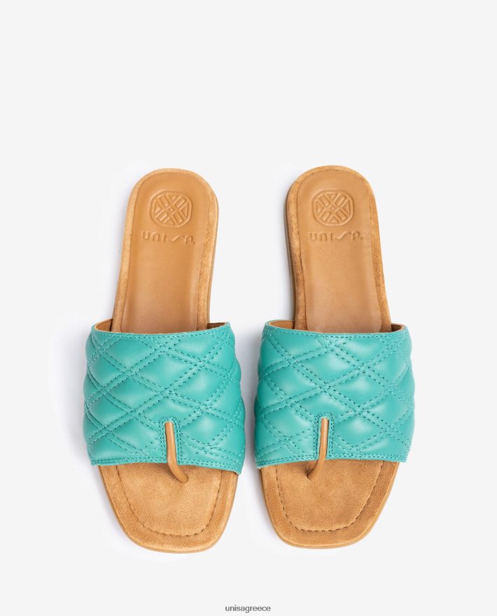 ίσιο σανδάλι τετράγωνο από δέρμα. καπιτονέ vamp με γεωμετρικό σχέδιο και λουράκι από φυσικό δέρμα ανάμεσα στα δάχτυλα των ποδιών. ελαφριά, εύκαμπτη, αντιολισθητική, σόλα από καουτσούκ. Η σχεδίαση και η άνεση που παρέχει η unisa θα σας συνοδεύουν σε όλα σας τα βήματα.