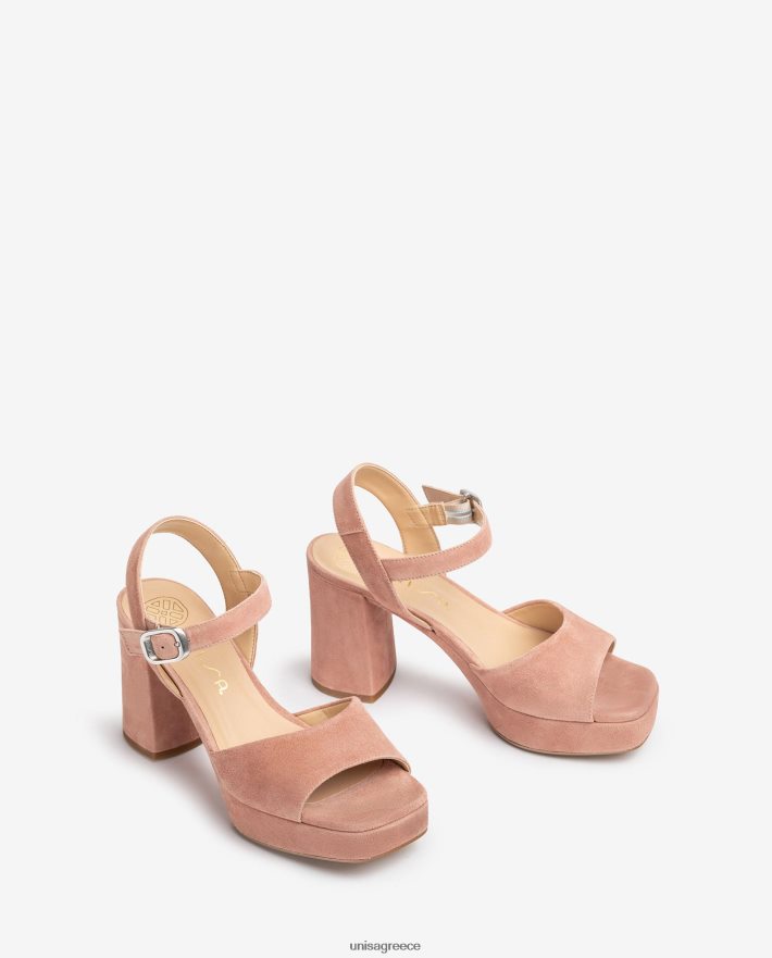 ροζ 84Z4P412 γυναίκες Unisa σουέντ πέδιλο με φαρδύ τακούνι