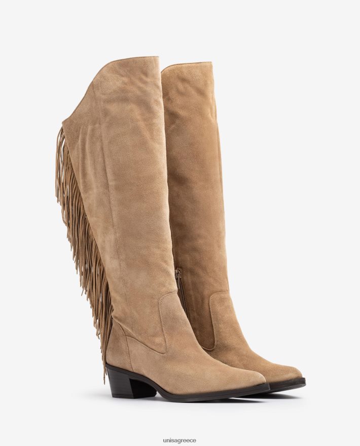 καστόρινο μποτάκι σε στυλ καουμπόη με φούντες στο πίσω μέρος του ποδιού της μπότας. Τακούνι ύψους 5 cm και ελαφριά, εύκαμπτη και αντιολισθητική σόλα. μια τάση που έχει βρει θέση στη νέα συλλογή unisa.