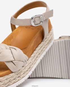 δερμάτινο σανδάλι με ασορτί χρώμα καπιτονέ πλεξούδα στο vamp. ο ιμάντας αστραγάλου μπορεί να ρυθμιστεί χρησιμοποιώντας τη μεταλλική πόρπη. Πλατφόρμα καλυμμένη από γιούτα 4,5 cm. λευκή, αντιολισθητική, ελαφριά σόλα από καουτσούκ.