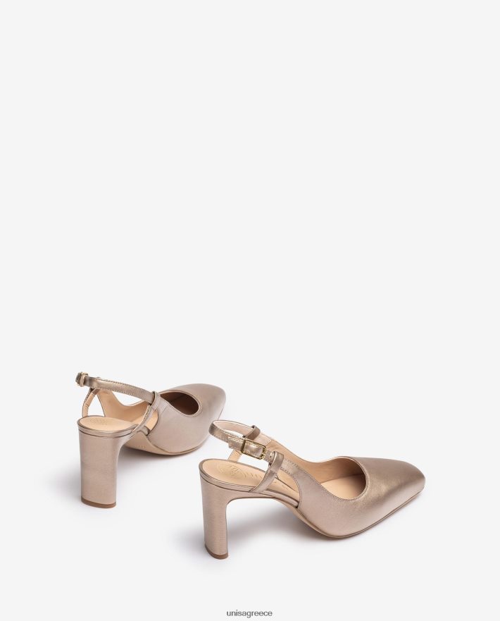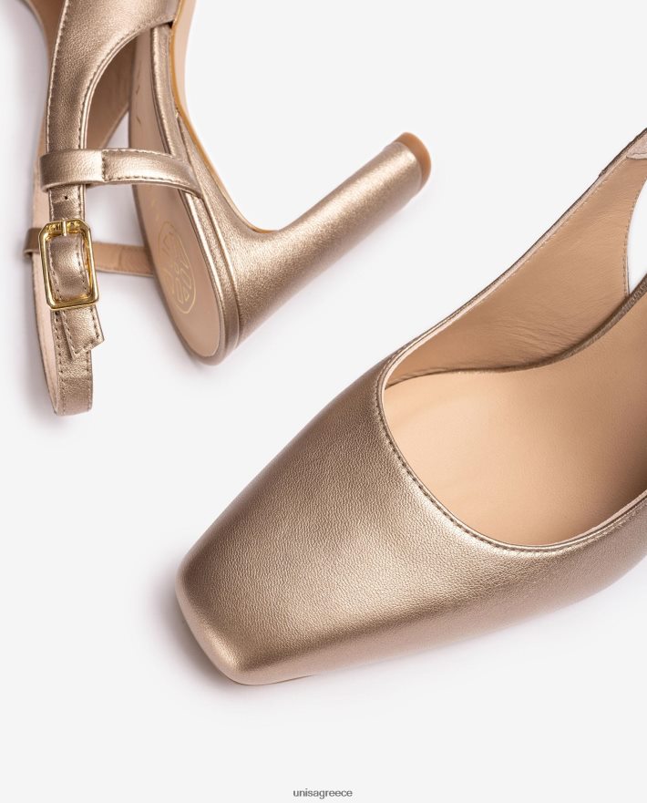 Πλάτη με τετράγωνο δάχτυλο φτιαγμένο από μεταλλικό δέρμα. Τακούνι 7,5 εκ. καλυμμένο με ασορτί τόνο σουέτ. ελαφριά, εύκαμπτη, αντιολισθητική, λαστιχένια σόλα και λουράκι αστραγάλου που μπορεί να ρυθμιστεί με τη μεταλλική πόρπη. το σχέδιο του μοντέλου wacu από την unisa θα σας εκπλήξει!