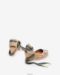 Εσπαντρίγια με στρογγυλά δάχτυλα περιορισμένης έκδοσης. φτιαγμένο από εκατό τοις εκατό βαμβακερό ύφασμα και στάμπα σχεδιασμένη για unisa από τον εικονογράφο mercedes bellido, εμπνευσμένη από τη Μεσόγειο. Σφήνα ύψους 7,5 cm καλυμμένη με φυσική γιούτα και πλατφόρμα 1 cm. ρυθμιζόμενα βαμβακερά λουριά γύρω από τον αστράγαλο και αποκλειστική χρυσή μεταλλική επένδυση στα άκρα.