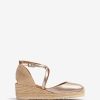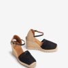 εσπαντρίλια σουέτ με λουράκι στον αστράγαλο που μπορεί να προσαρμοστεί χρησιμοποιώντας τη μεταλλική πόρπη. κούμπωμα καρφιού στο βαμπ και τη φτέρνα. Τακούνι σφήνα 9 εκ. καλυμμένο με γιούτα και πλατφόρμα 2,5 εκ.. Αντιολισθητική, εύκαμπτη, ελαφριά σόλα tpu.