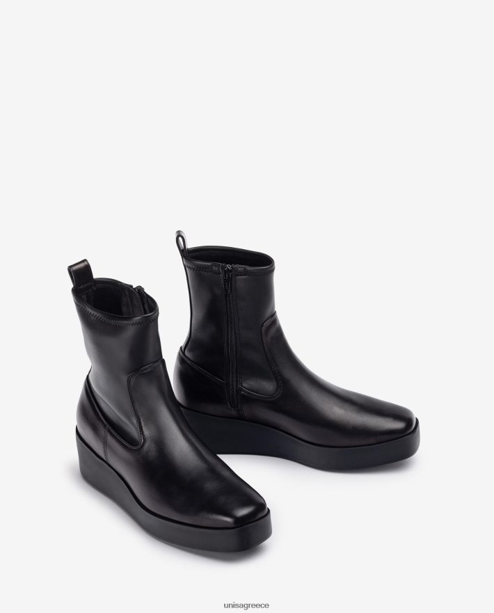 Μποτάκι τετράγωνο από δέρμα και ελαστικό ύφασμα και φερμουάρ στο εσωτερικό. Υπερελαφριά σόλα, τακούνι 5cm και πλατφόρμα 2,5cm. το superlight concept έχει σχεδιαστεί έτσι ώστε να φοράτε τις πιο άνετες μπότες της αγοράς.