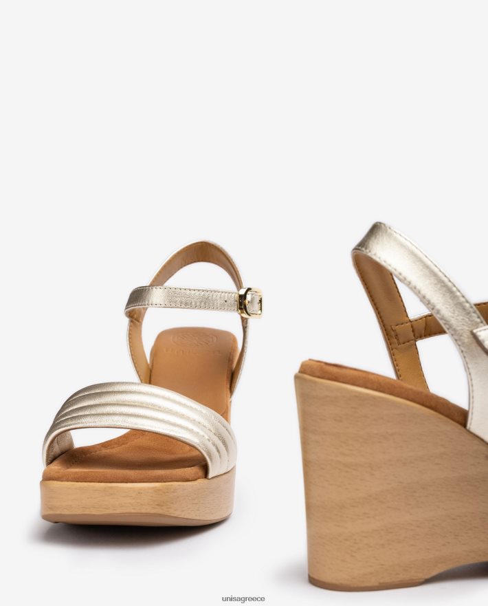 χρυσός 84Z4P216 γυναίκες Unisa σανδάλι με τακούνι και πλατφόρμα