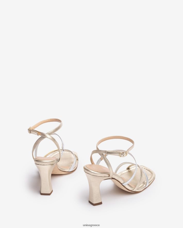 χρυσός 84Z4P267 γυναίκες Unisa Δερμάτινο πέδιλο με μεταλλικό αποτέλεσμα