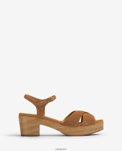 καφέ 84Z4P409 γυναίκες Unisa μεσαίου ύψους σουέντ σανδάλι με τακούνι