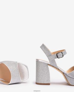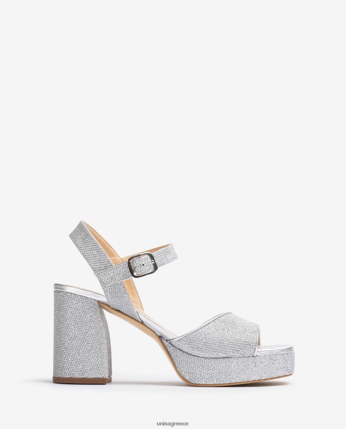 ασήμι 84Z4P224 γυναίκες Unisa σανδάλι από γυαλιστερό ύφασμα με φαρδύ τακούνι