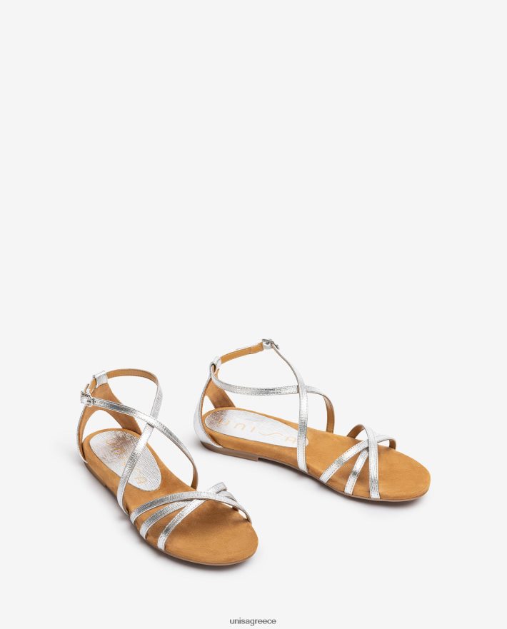 ασήμι 84Z4P391 γυναίκες Unisa φλατ σανδάλια από μεταλλιζέ δέρμα
